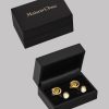 Golden cufflinks for an accessory that’s also jewellery. The collection’s signature golden “feti-chic” rings to embellish the cuffs of men’s or women’s cuffed shirts, inviting you to attach them.