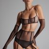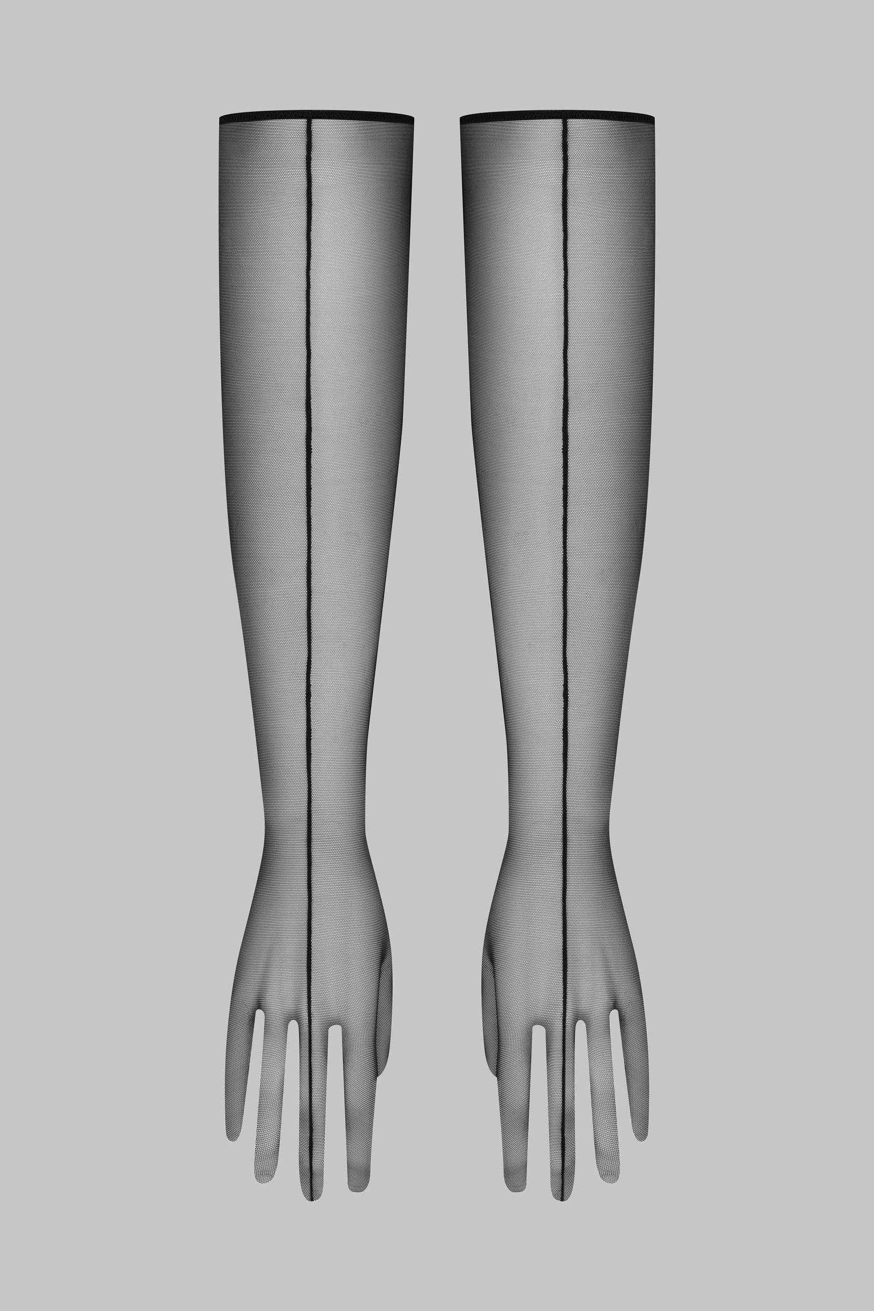 Opera gloves in totally transparent tulle. The beautifully stylish seams define your hands and forearms down to your fingertips. The perfect accessory for adding a finishing touch to a daytime or night-time look. Worn with a ready-to-wear outfit, dress or jacket, these gloves are captivating and subtly suggestive.