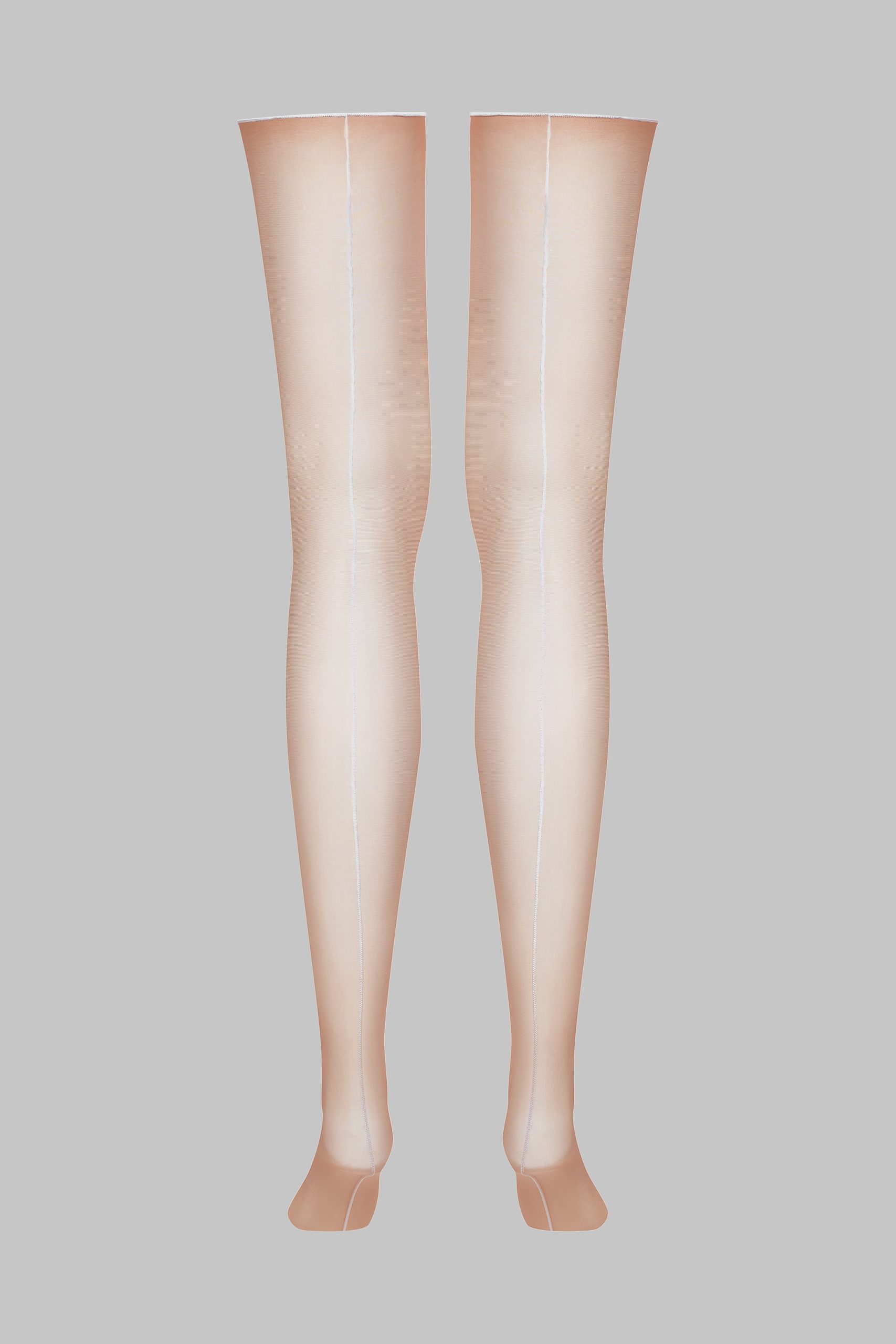 Maison Close’s signature cut and curled stockings. Nude with white seams that match ACCROCHE CŒUR collection.