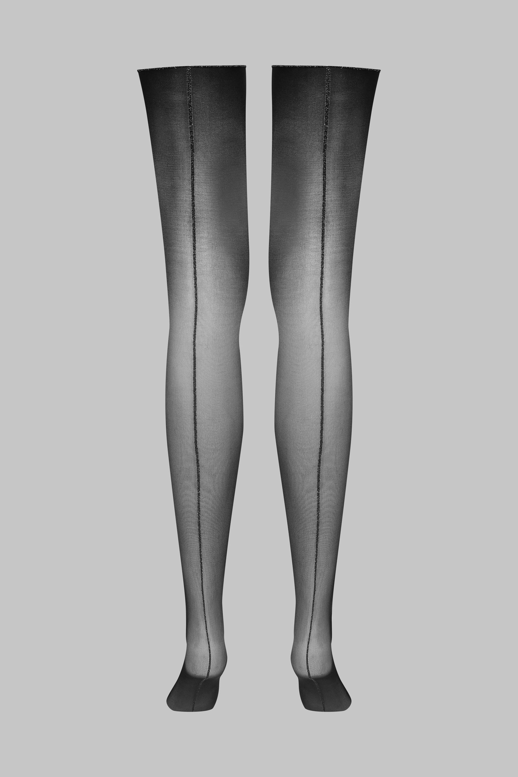 Maison Close Women’s Les Coquetteries Cut And Curled Lurex Back Seamed Stockings 20d – Black/silver | Black & Silver