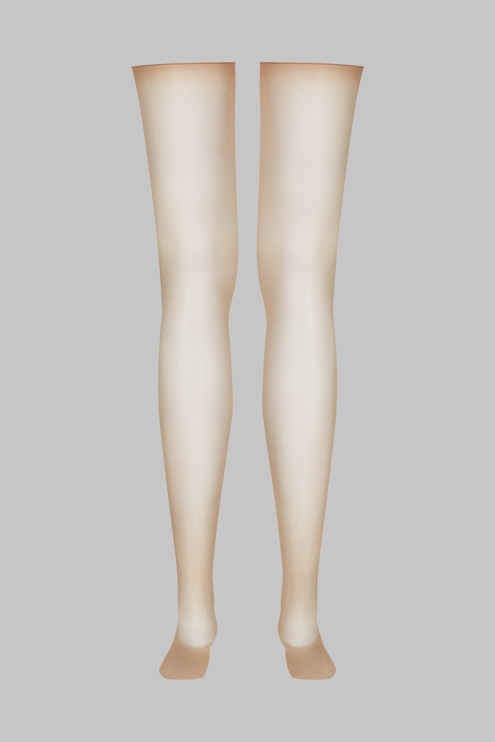 Maison Close’s signature cut and curled stockings. Sheer 20 denier nude voile.