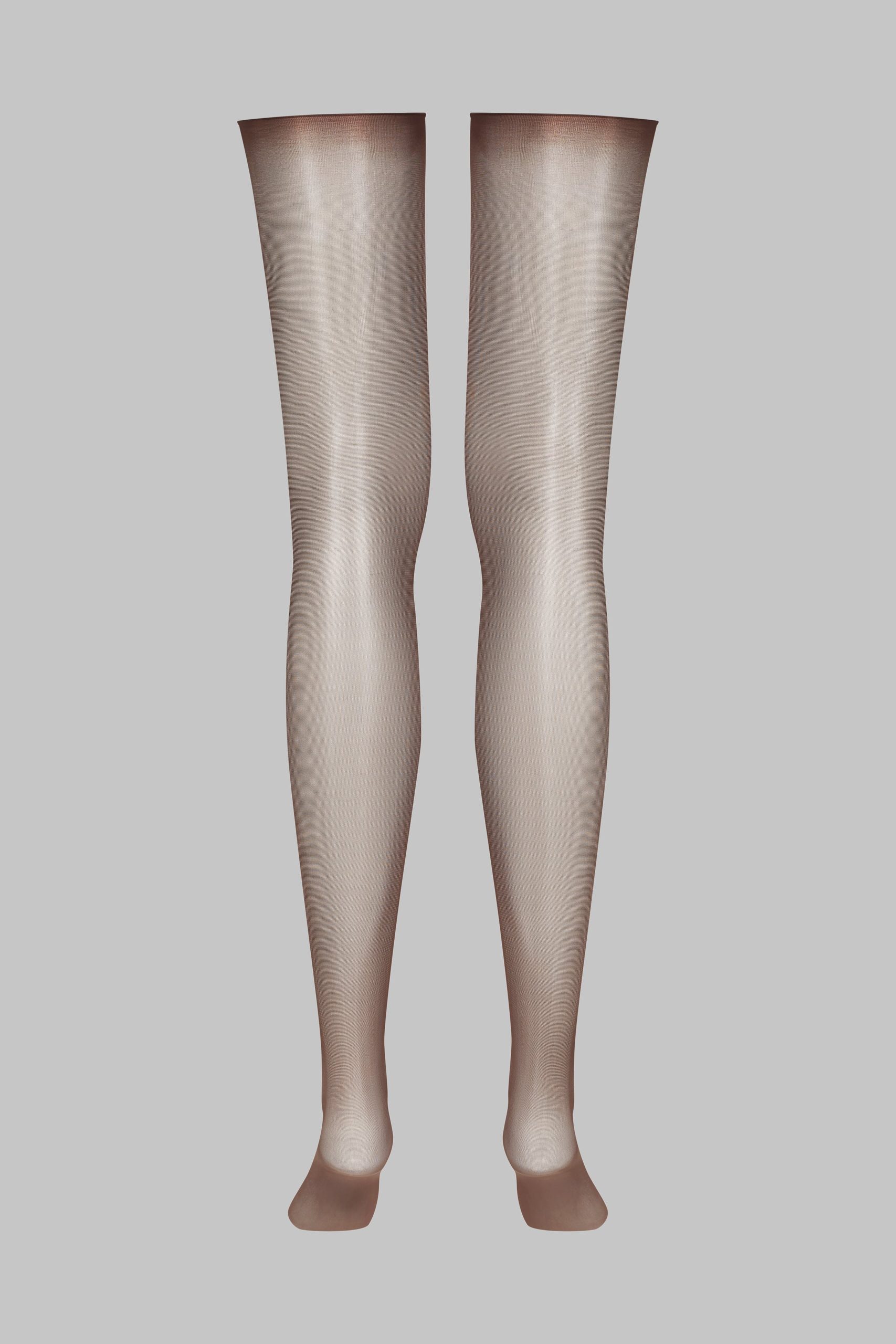 Maison Close’s signature cut and curled stockings. Sheer 20 denier brown voile.