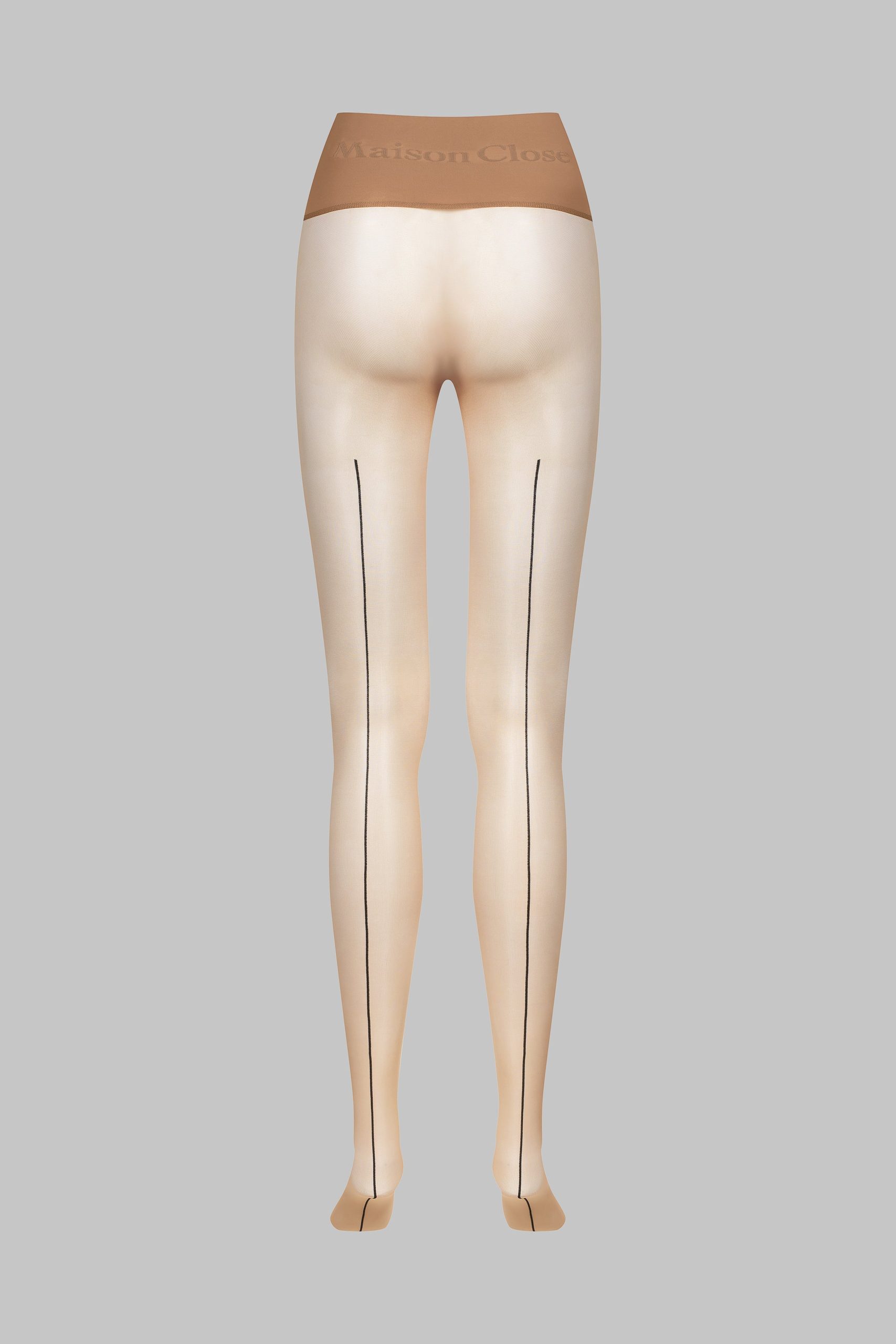 Like a second skin that’s totally invisible under clothes, the seamless crotchless tights enhance the silhouette with their subtle shine. The delicate seams elegantly highlight the back of the legs. A sculpting, ultra-comfortable waistband in Maison Close’s signature tone-on-tone design shapes the waist. Without reinforcement on the feet, heeled sandals are an obvious choice. Made in Italy in an exceptional workshop.