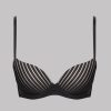 Microfibre-covered push-up bra with graphic stripes. Moulded cups with removable pads for a push-up bust effect. Underwired below bust with flexible ribs on the sides to provide excellent support. Plain microfibre back with adjustable hook-and-loop closure. Elastic, detachable straps with silver accents.