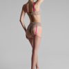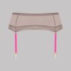 This nude colour suspender belt features soft mesh with a sheer iridescent appearance. Clip fastening on the back.
