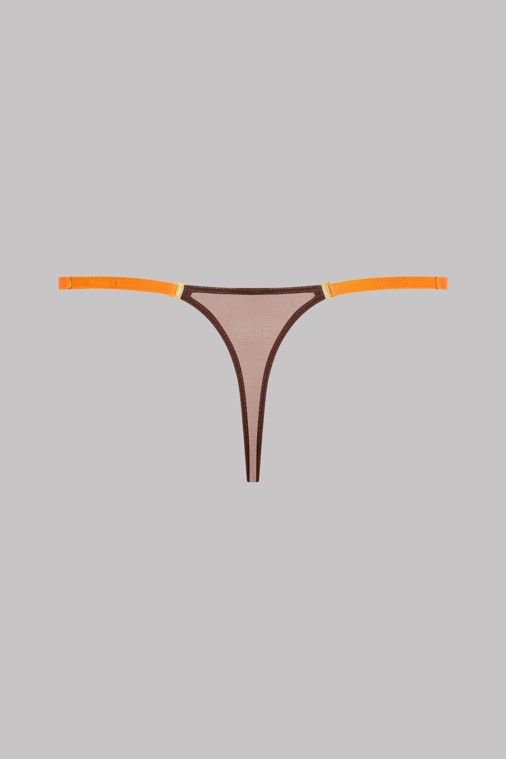 This nude colour mini thong features soft mesh with a sheer iridescent appearance.