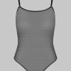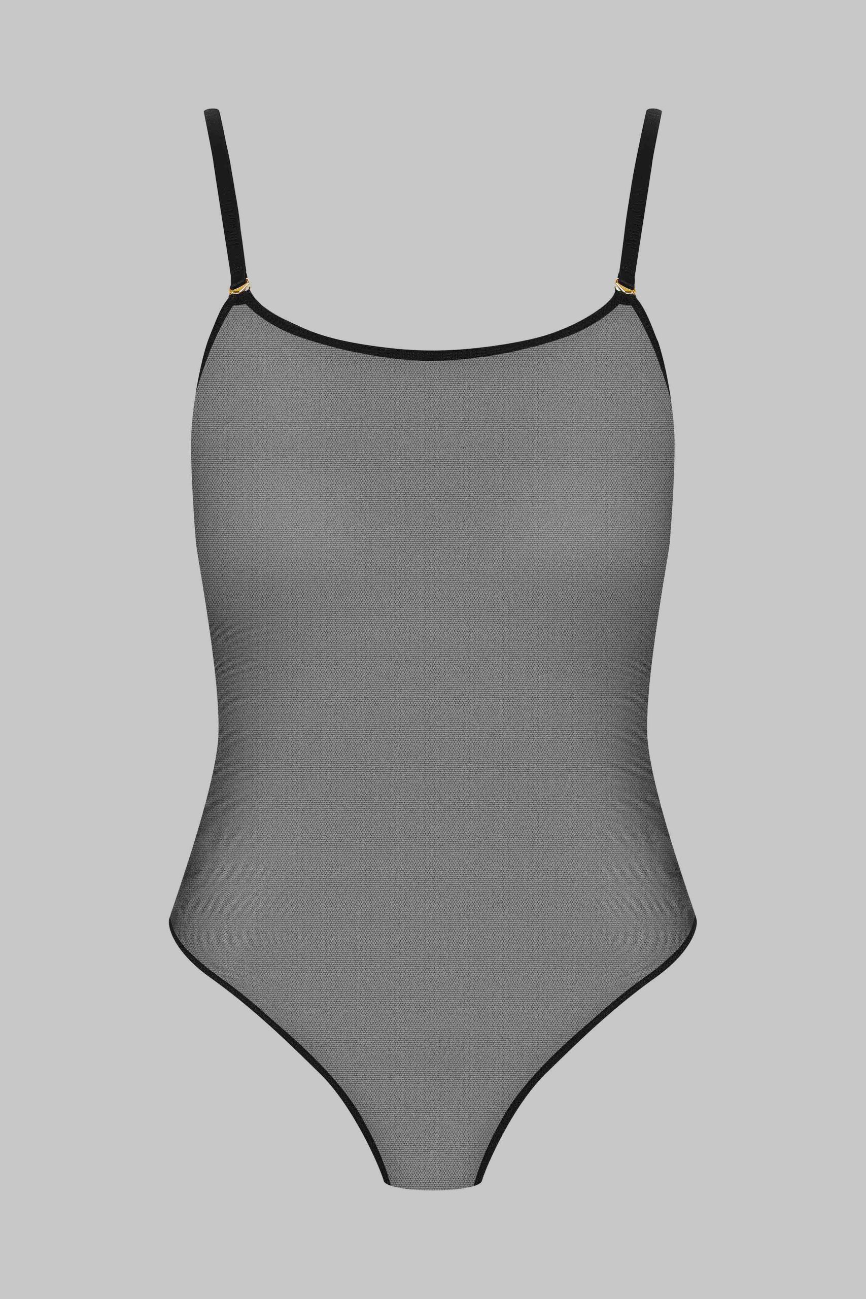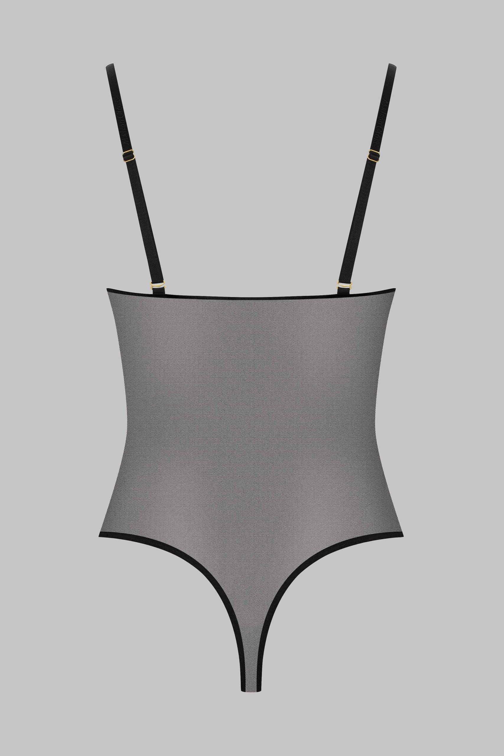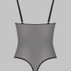This black colour thong body features soft mesh with a sheer iridescent appearance.