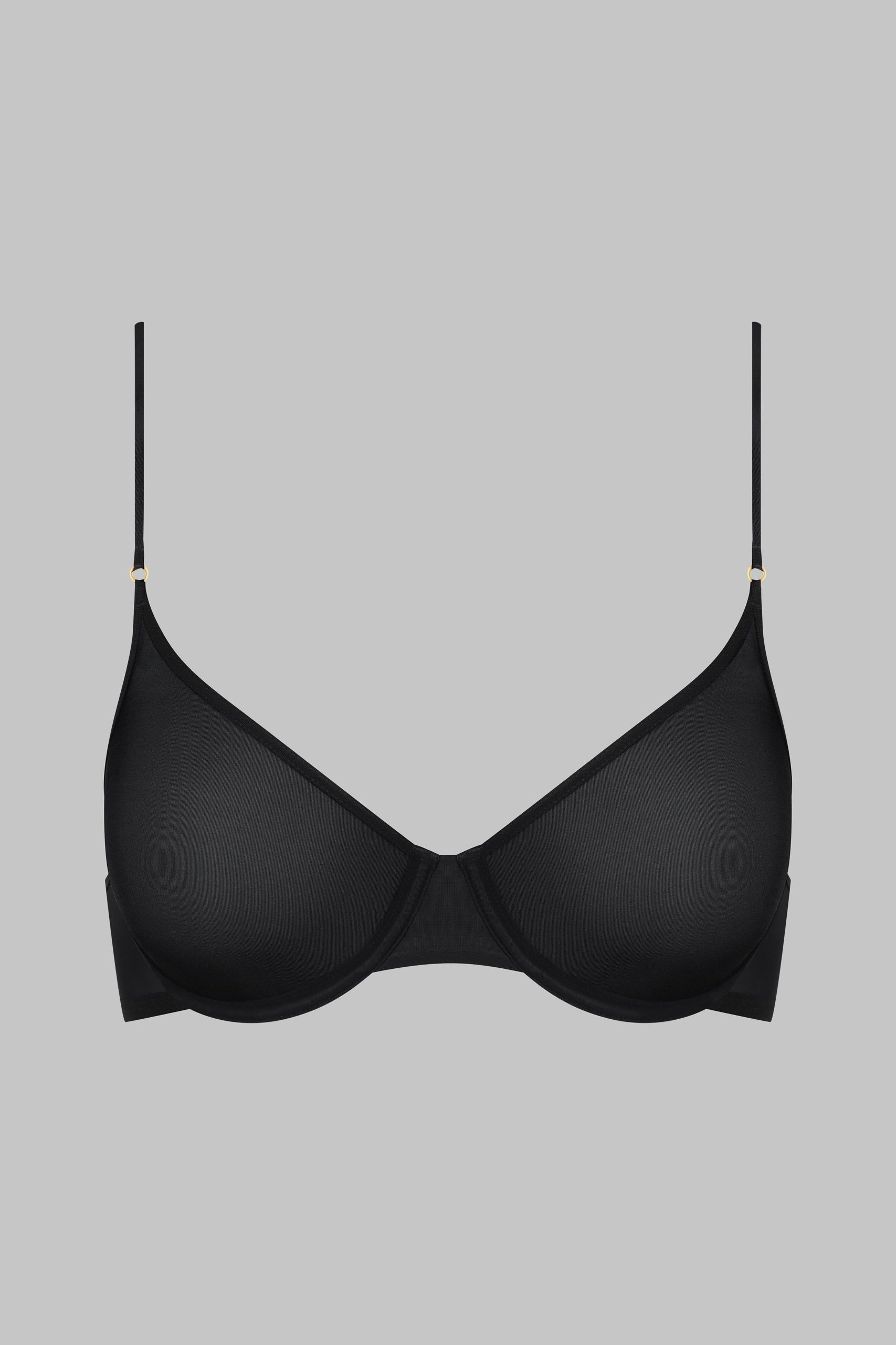 Underwired balconette bra. Made from fine jersey with a subtle sheen, it features an ultra-flat elasticated band that is invisible under clothes. Seamless, moulded cups that fit and shape the breasts perfectly. The gold signature of the Maison Close logo appears on the side. Fastens at the back with a smooth, subtle adjustable clip. Slim, non-removable and adjustable straps with gold accessories.