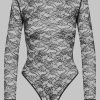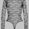 This thong bodysuit is embellished with mostly recycled openwork lace. With its flat elasticated trim, the high-leg design emphasises the hips for an ’80s style. Adjustable hook-and-eye fastening at the crotch.