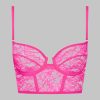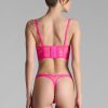 This neon-coloured balconette bra features mostly recycled openwork lace.Underwired cups that fit and shape the breasts perfectly. Bustier design with flexible vertical boning in the front and back. Fastens at the back with a smooth, subtle adjustable clip. Signature adjustable and removable neon straps with gold accessories. Swap whenever you like with any other Signature items available in various colours. An opportunity for each Muse to create their own zingy mix and match.