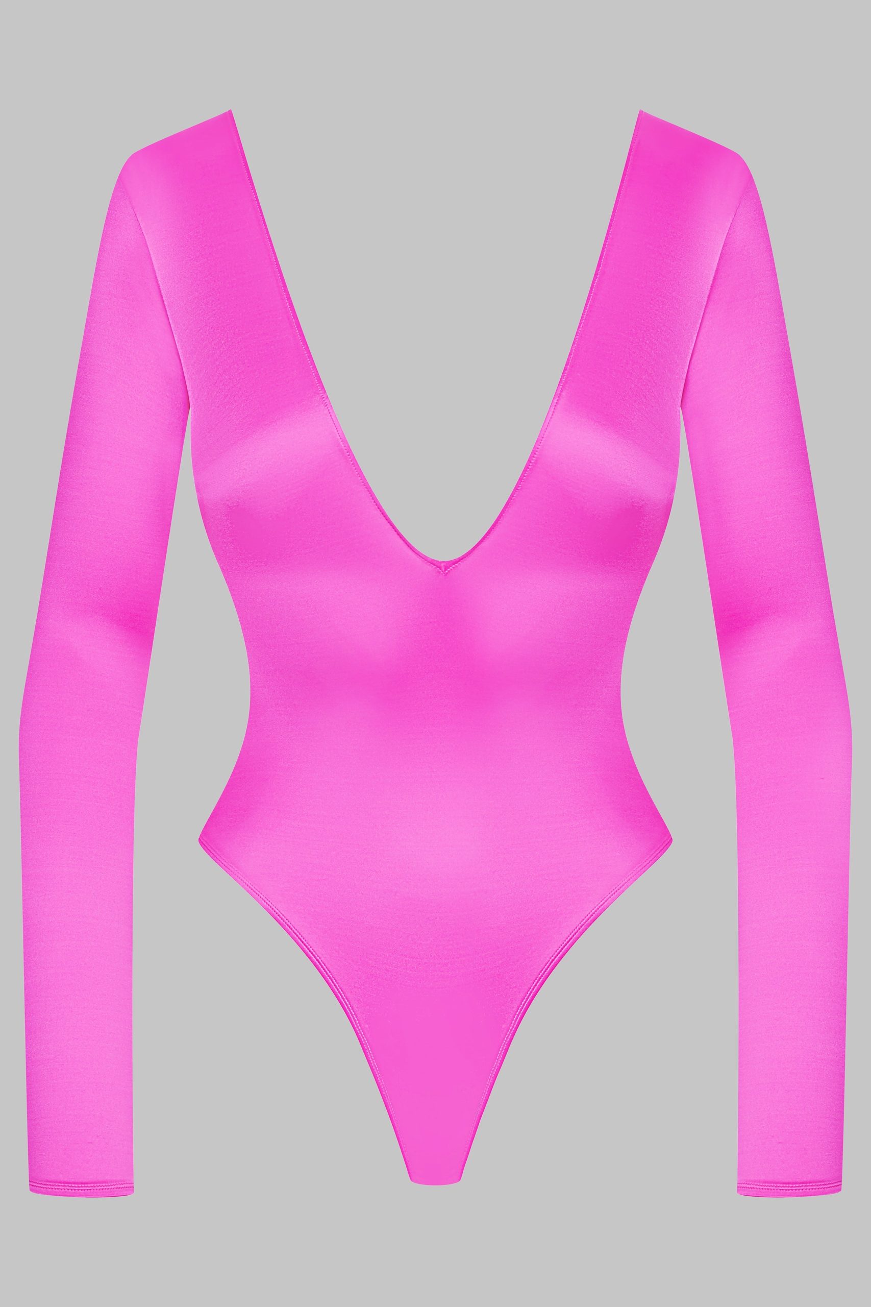 Maison Close Women’s Lingerie French Kiss Open Back Long Sleeve Thong Bodysuit | Pink