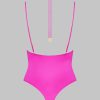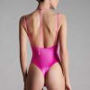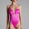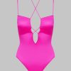 Thong body with straps, combining satin softness and elegant style. A ravishing back structured with flat and adjustable fine straps and an unmistakeable 80s-style neckline. Lacing detailing delicately pleated at the front offers adjustable, elegant openings thanks to a unique adjuster and gold lipstick accessories by Maison Close, to adjust as you wish. Adjustable hook-and-eye fastening at the crotch.