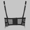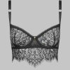 Corbeille bra with underwiring teaming a stiff Gothic lace with Swiss dot mesh. Wide, adjustable elasticated straps for perfect support. Adjustable hook-and-eye fastening on the back. A haunting piece of lingerie that is iconic of the Inspiration Divine collection.