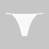 Minimalist mini thong with a unique feel. Stretchy, ultra-soft, lightweight ribbed modal that stretches and has a sheer, shiny sheen. Featuring 2 modal-covered non-removable elasticated straps with adjustable silver trim. Cotton-lined crotch.