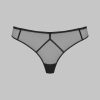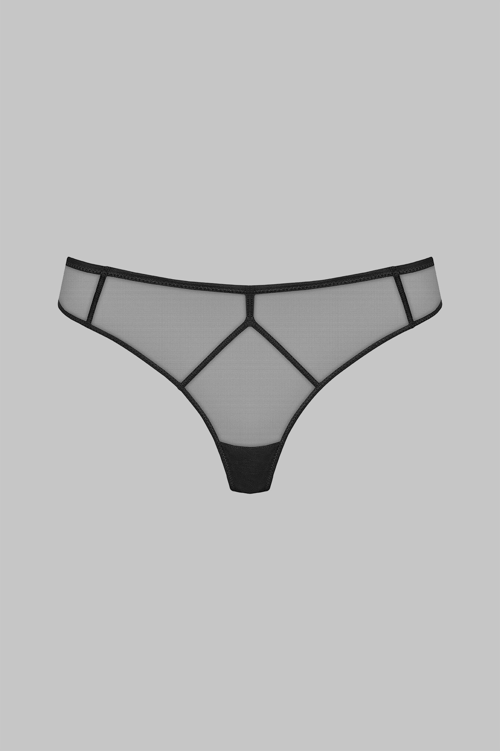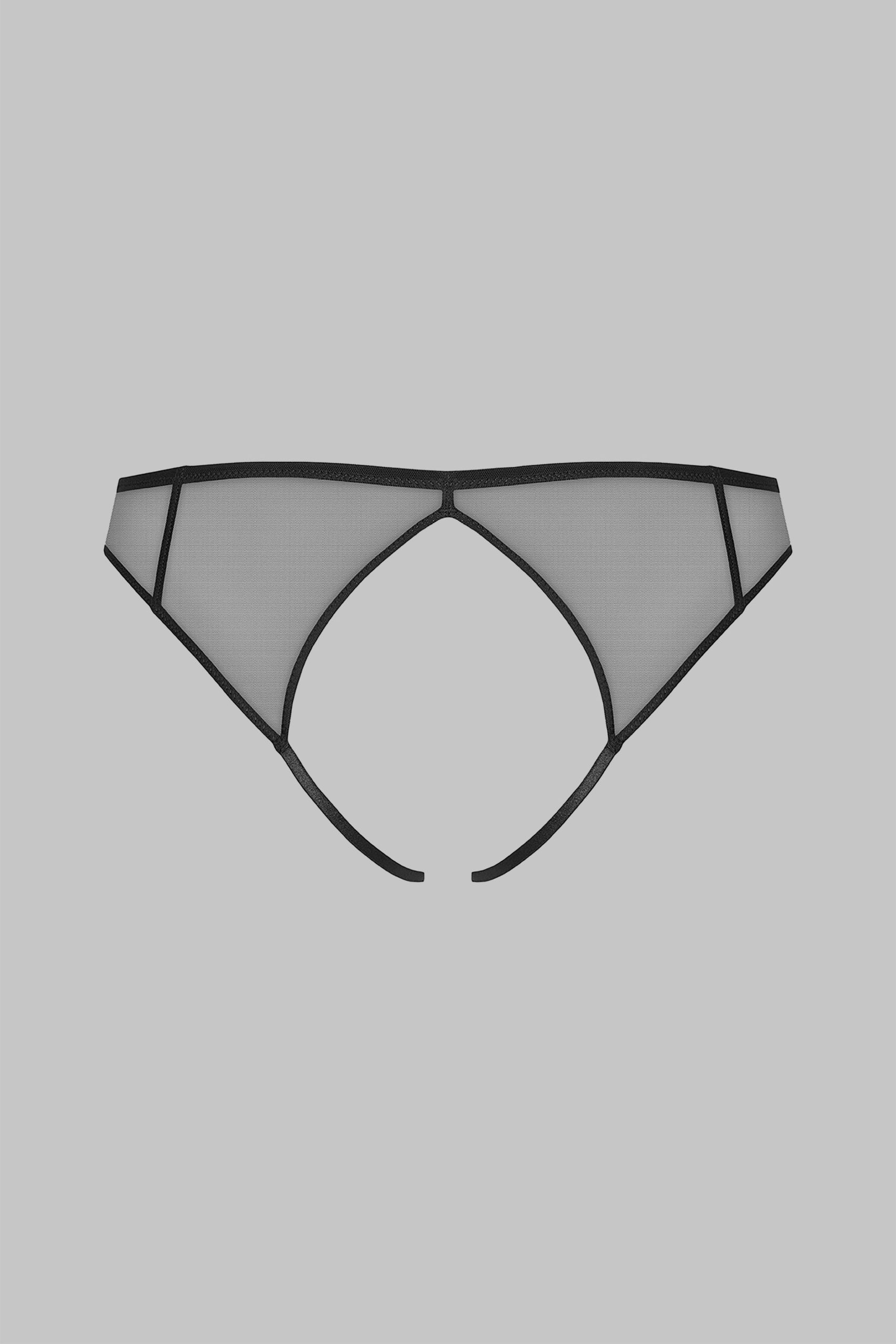 Heart-shaped panties in 100% sheer mesh. Cross-stitching.