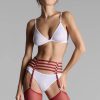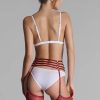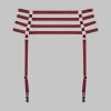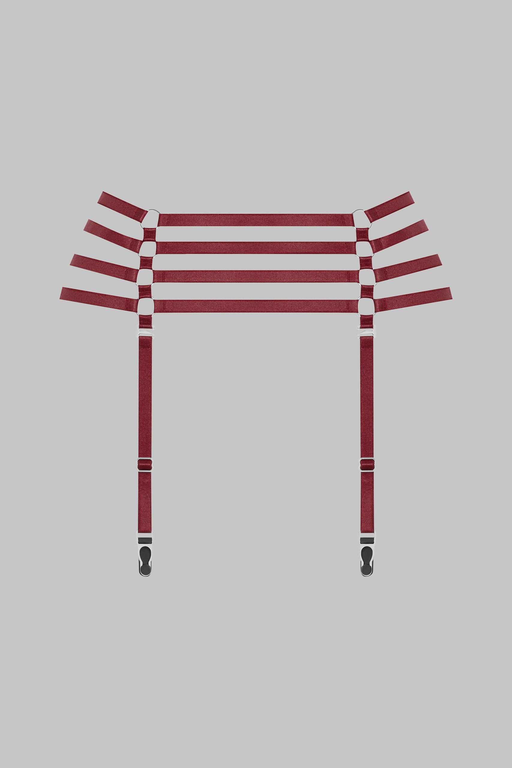 Suspenders by Maison Close Clusters of fine silver rings and elasticated burgundy ribbons create a jewellery-accented accessory to subtly accentuate your nudity. Four adjustable, removable suspender straps call for stockings to enhance your look or transform this suspender belt into a stylish belt. Adjustable to suit all body shapes.