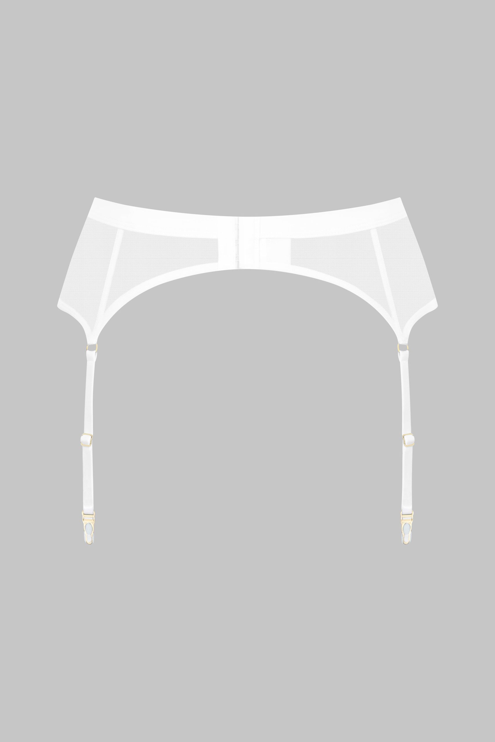 Semi-opaque microfibre galter belt. A timeless piece to wear with stockings attached to the 4 fitted adjustable suspenders. Elasticated waistband with adjustable back.