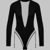 Maison Close Women’s Lingerie Pure Tentation Long Sleeve V-neck Thong Bodysuit With Garter | Black