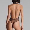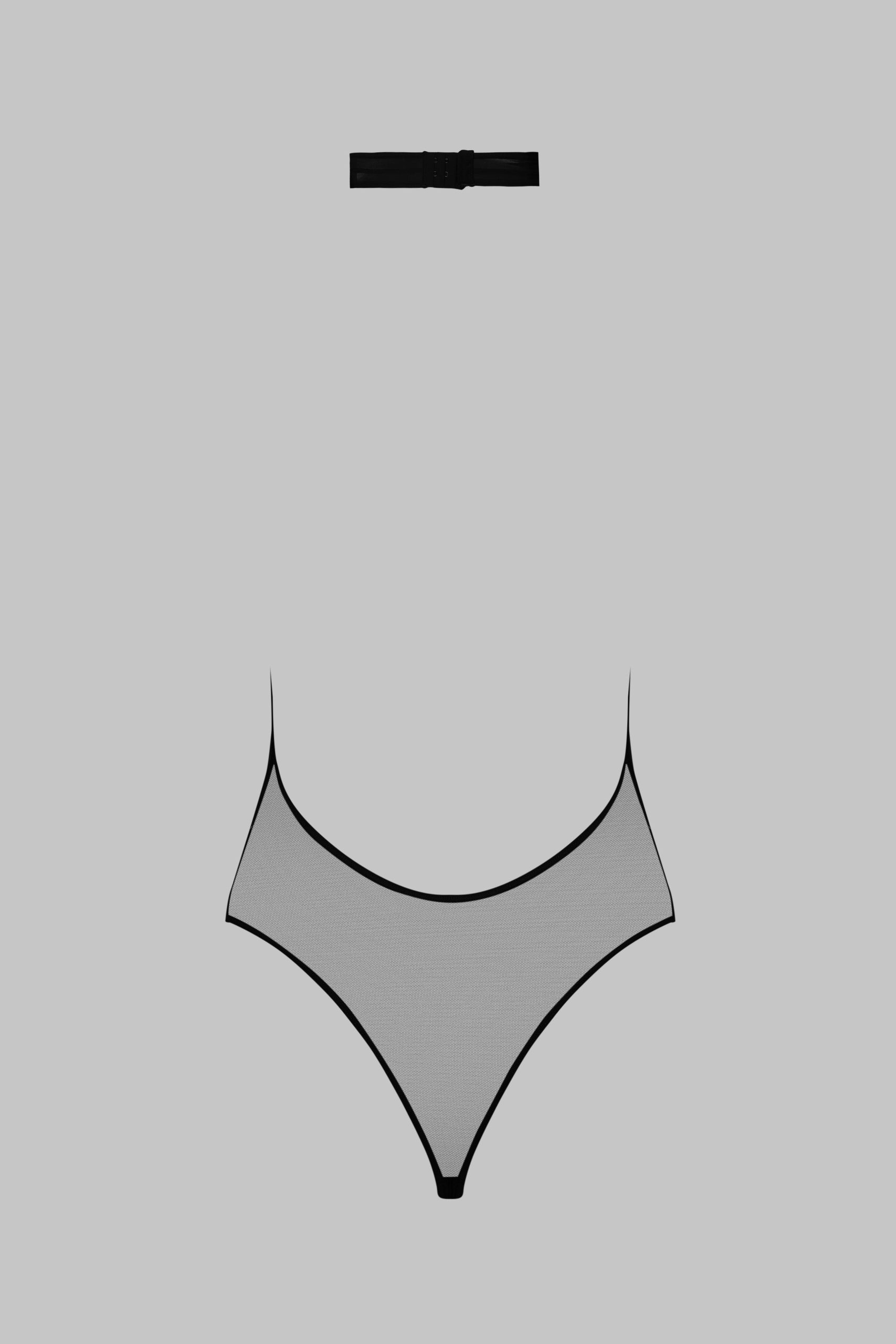 The V-neck thong bodysuit – Pure Tentation explores contrasts. Its cut enhances the figure with a plunging V-neckline at the front and an ultra-sheer back scooped down to the small of the back. Made from light tulle and opaque microfiber, it plays with layering and illusion. A discreet hook-and-eye closure at the crotch ensures comfort, while a back neck opening makes it easy to slip on. Cotton lining at the crotch.