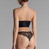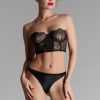 Strapless bra in silk and eyelash lace. Underwired transparent lace cups that perfectly hug and shape the breasts. Front lace enhanced with a fine gathered silk band and a complete contrasting silk back.
