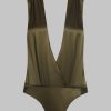 Wrap over thong bodysuit in natural silk with a deep V neckline. Sublime pleats at the shoulders and a perfect thong cut make it an essential garment. A thin elastic waistband covered in gathered silk elegantly outlines the waist. Non-openable crotch for extra comfort.