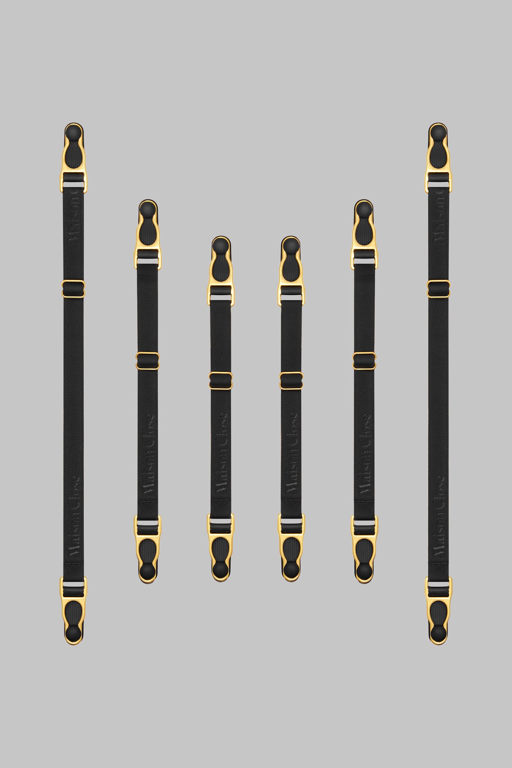 Six removable and adjustable Signature double suspenders straps with gold accents. The two-way ties mean you can accessorise your stockings with all your Maison Close lingerie and ready-to-wear without needing a garter belt. Play about with it. It’s an opportunity for each Muse to create their own mix and match.