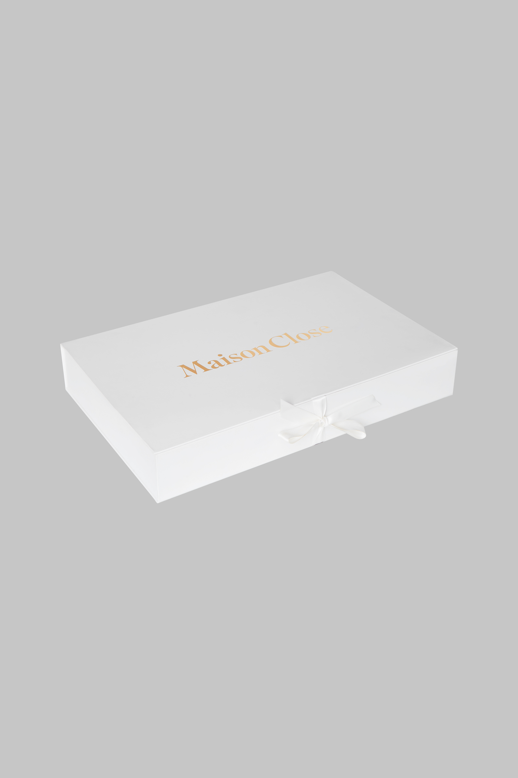 Offer your gifts with elegance using this stylish white box. Enhanced by a delicate white satin bow, it ensures a closure that is both chic and sophisticated. A golden Maison Close logo completes its design, adding a touch of prestige to your presents.