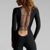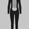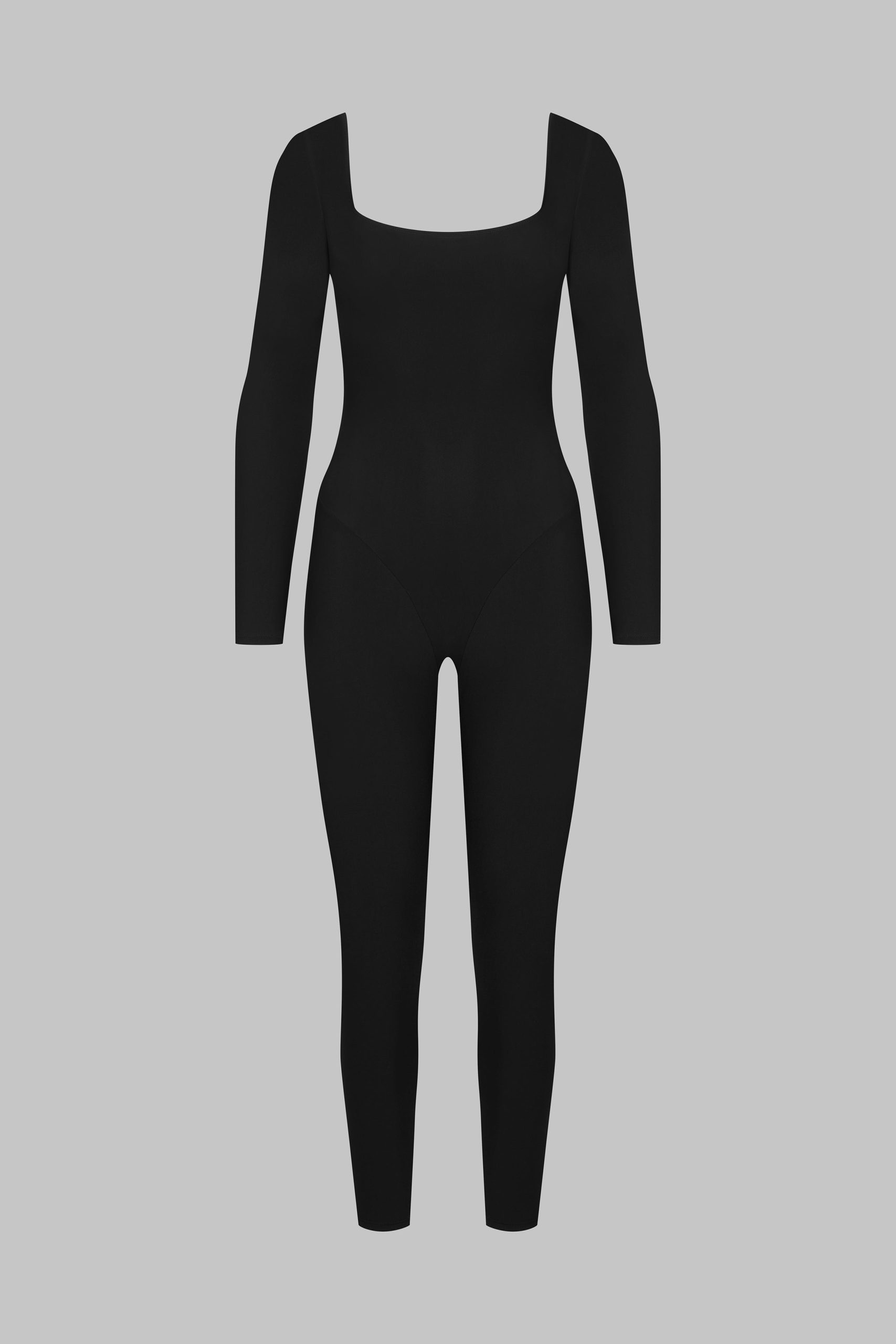 This backless catsuit from the Nuit Infinie collection stands out with its plunging neckline and tailored lines. The adjustable back lacing, secured with a regulator, ensures a precise fit while emphasizing the body’s natural curves. Tapered legs and long sleeves complete its refined and timeless style.
