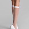 Silky black voile with a delicate 20-denier finish. A tone-on-tone elastic band adds a trendy schoolgirl touch. Pair with the Le Gatsby garter belt for an authentic retro look.